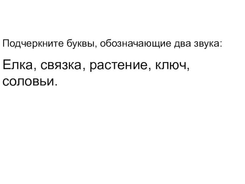 Подчеркните буквы, обозначающие два звука:Елка, связка, растение, ключ, соловьи.