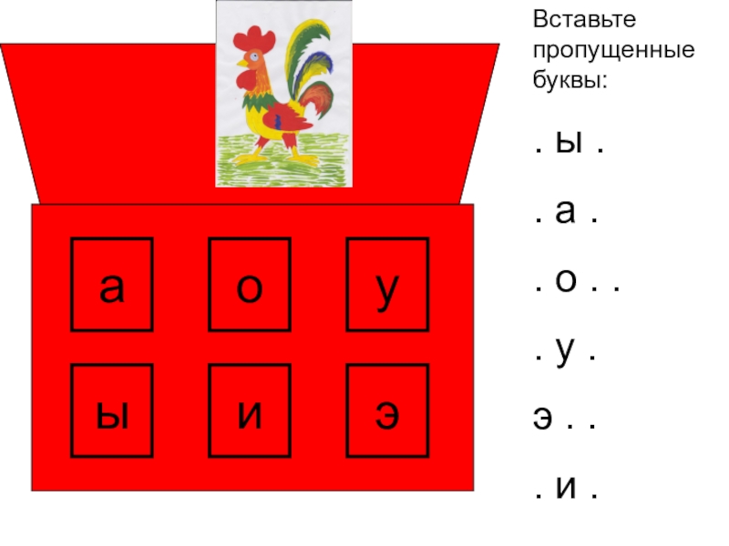 аоуыиэВставьте пропущенные буквы:. ы .. а .. о . .. у .э . .. и .