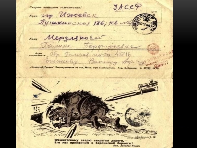 Слайд 7 «Мы нанесли под Бобруйском тяжелый удар по немцам. Хочется, чтобы 1944