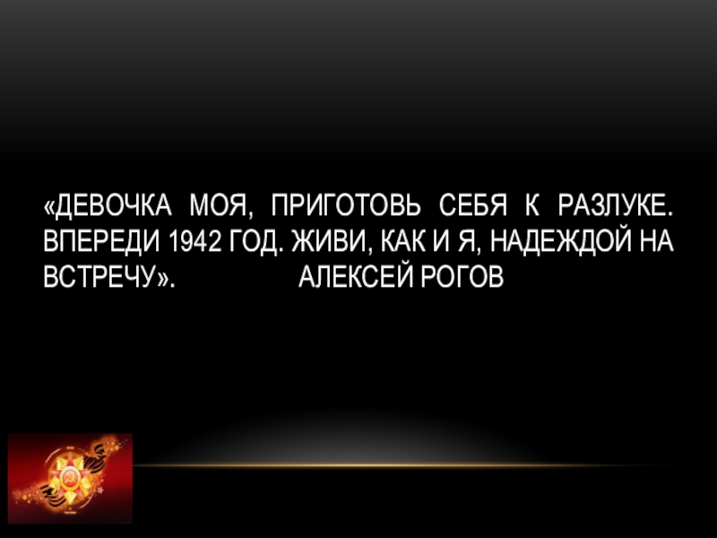 Слайд 8«Девочка моя, приготовь себя к разлуке. Впереди 1942 год. Живи, как