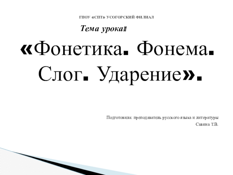 ГПОУ «СПТ» УСОГОРСКИЙ ФИЛИАЛ