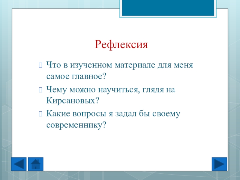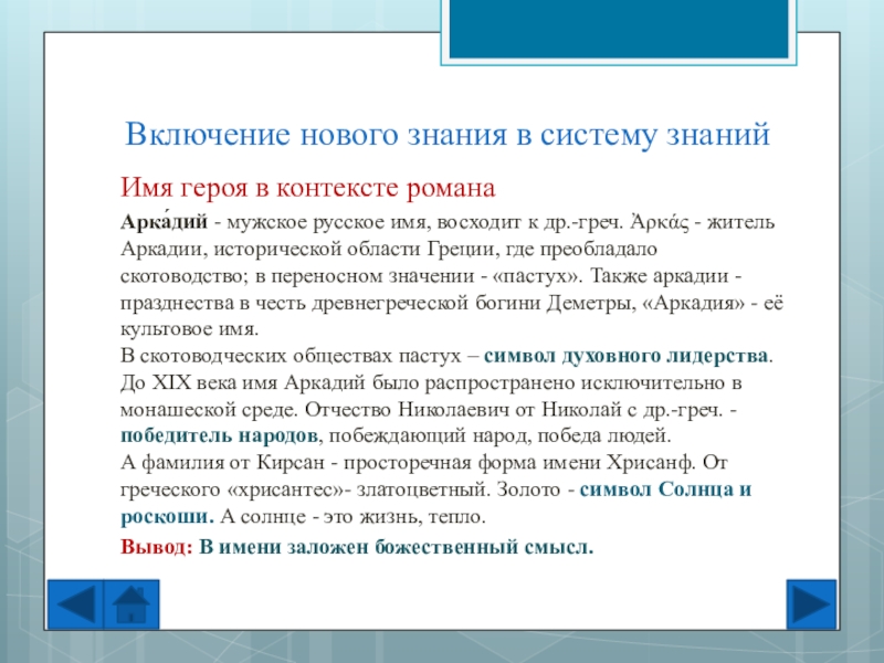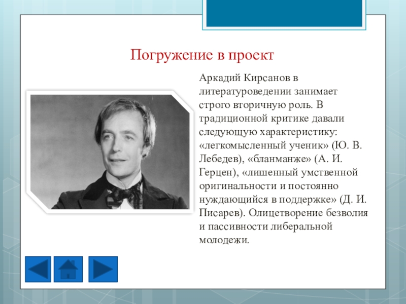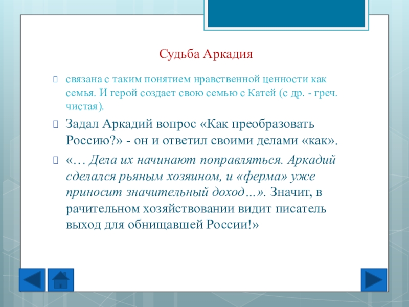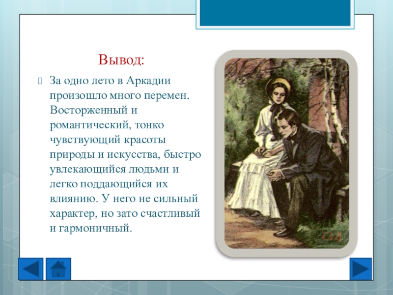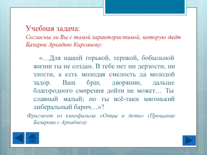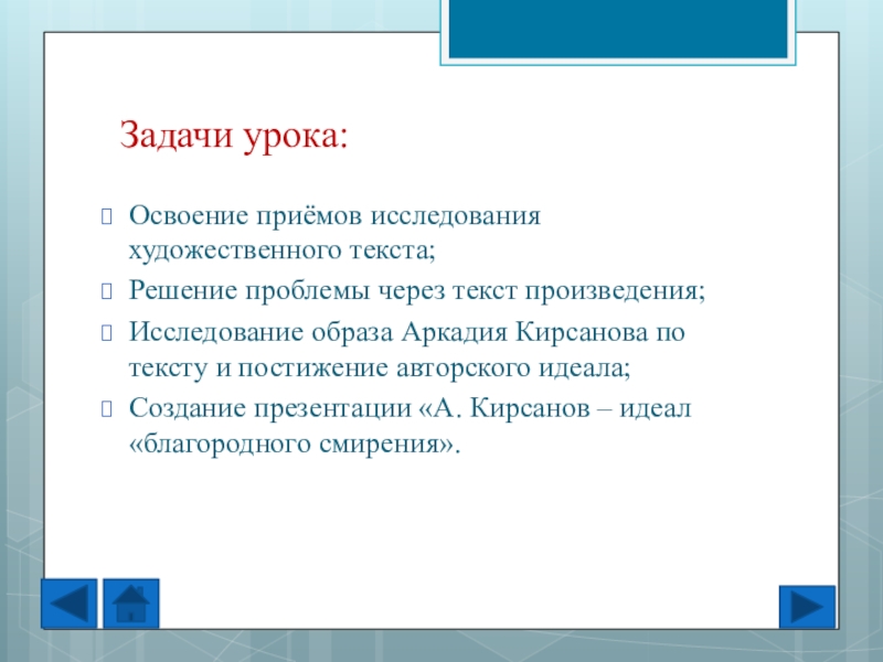 Тема урока: Аркадий Кирсанов – идеал «благородного смирения»