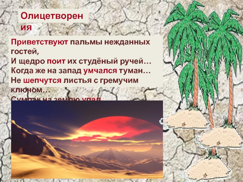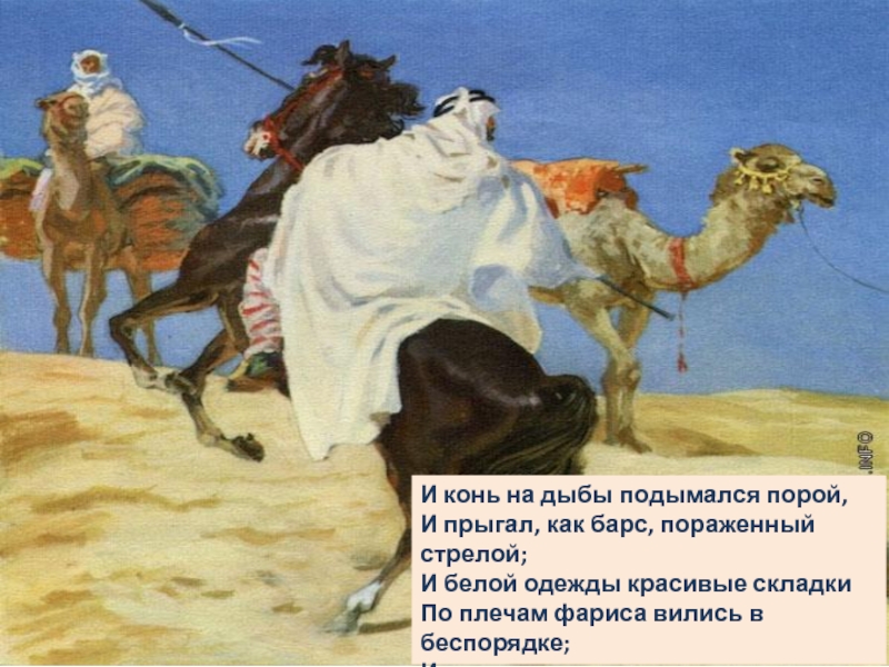 Слайд 8Вот к пальмам подходит, шумя, караван: