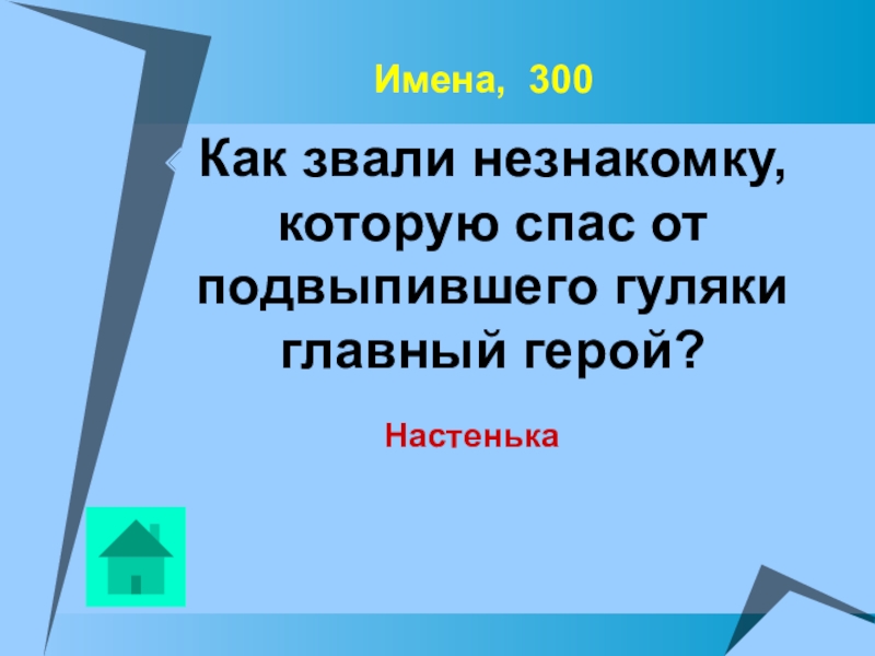 Как звали незнакомку, которую спас от подвыпившего гуляки главный герой?
