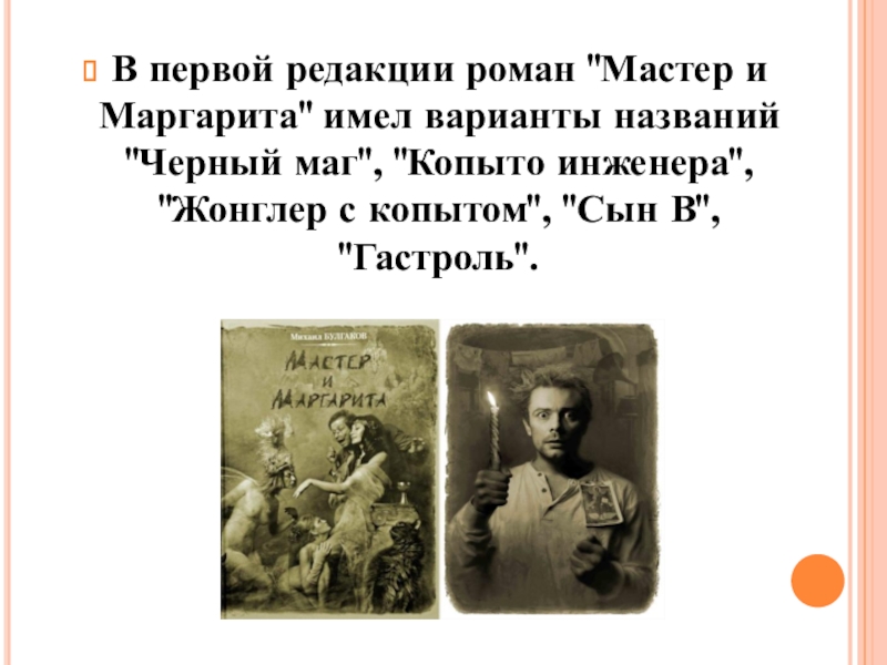 Слайд 6В первой редакции роман "Мастер и Маргарита" имел варианты названий "Черный