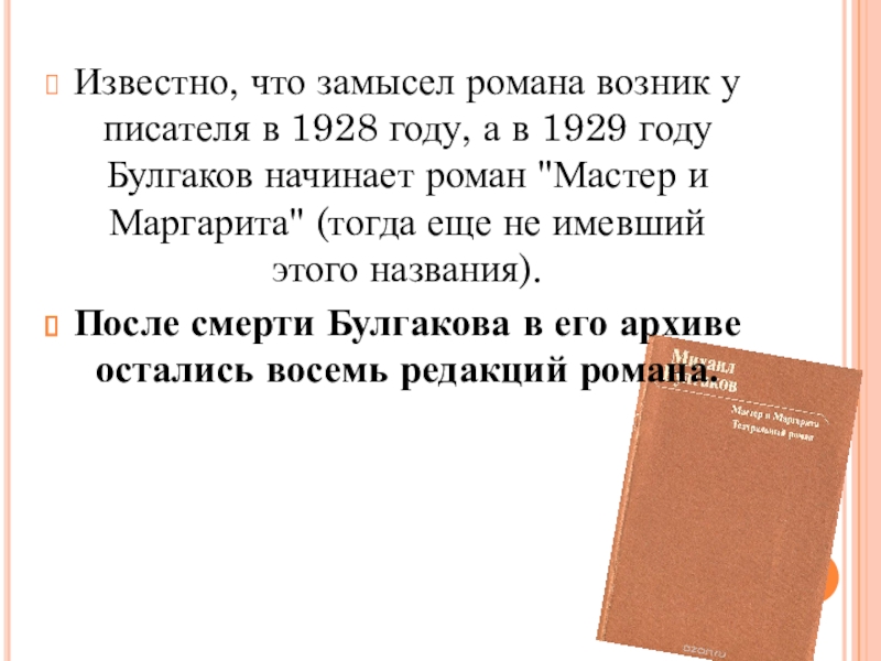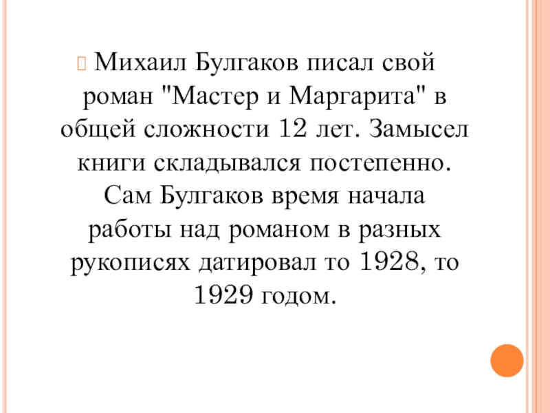 Слайд 4Михаил Булгаков писал свой роман "Мастер и Маргарита" в общей сложности