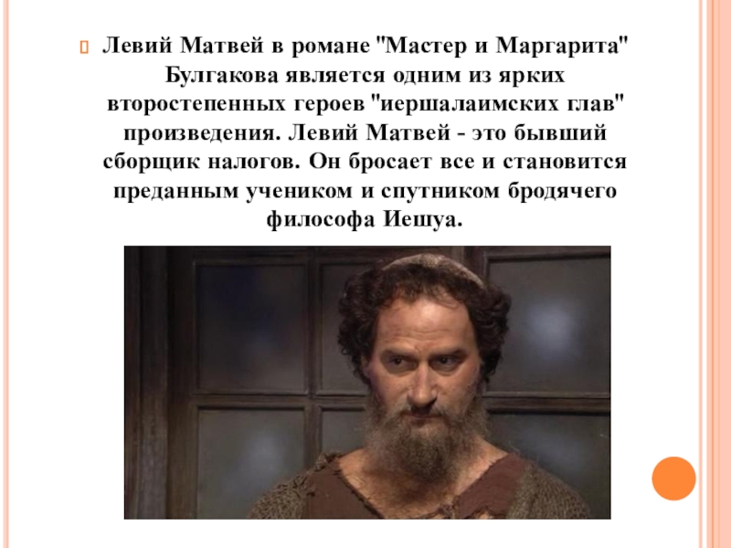 Слайд 34Левий Матвей в романе "Мастер и Маргарита" Булгакова является одним из