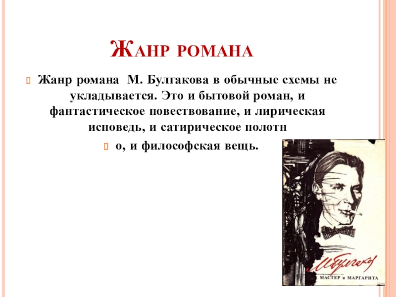 Жанр романа М. Булгакова в обычные схемы не укладывается. Это