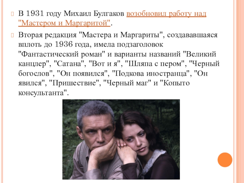 Слайд 8В 1931 году Михаил Булгаков возобновил работу над "Мастером и Маргаритой".