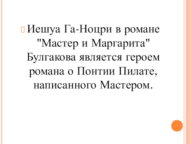 Слайд 31Иешуа Га-Ноцри в романе "Мастер и Маргарита" Булгакова является героем романа