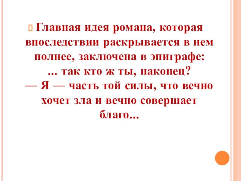 Слайд 35Главная идея романа, которая впоследствии раскрывается в нем полнее, заключена в