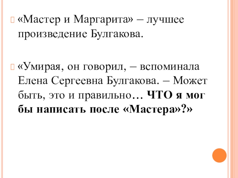 Слайд 3«Мастер и Маргарита» – лучшее произведение Булгакова.