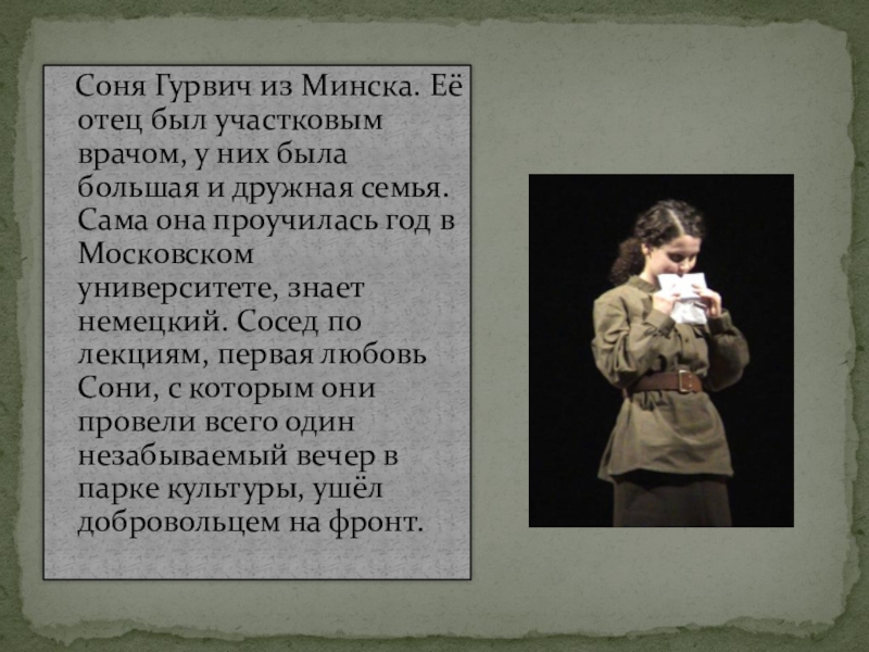 Слайд 7 Соня Гурвич из Минска. Её отец был участковым врачом,