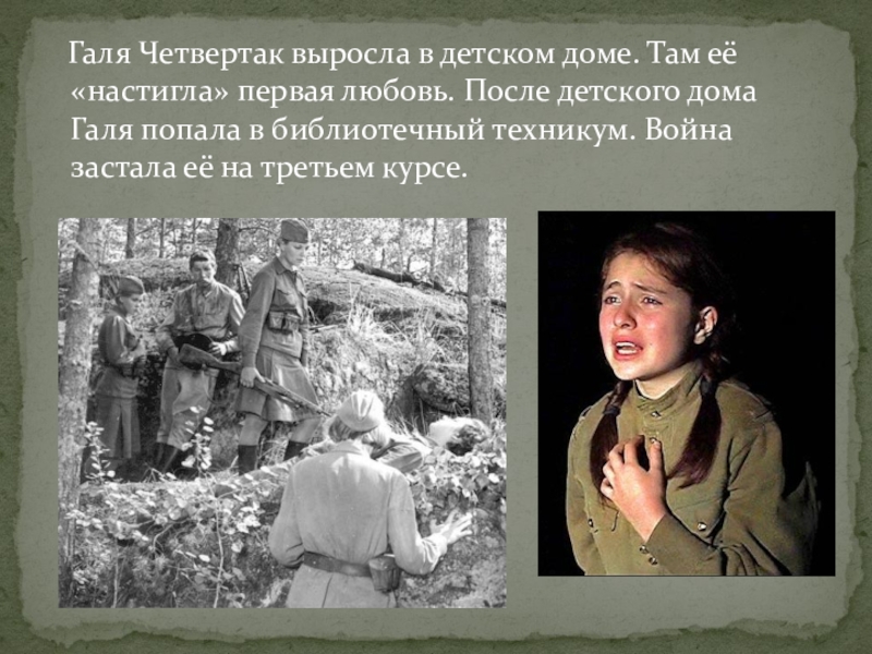 Слайд 8 Галя Четвертак выросла в детском доме. Там её «настигла»