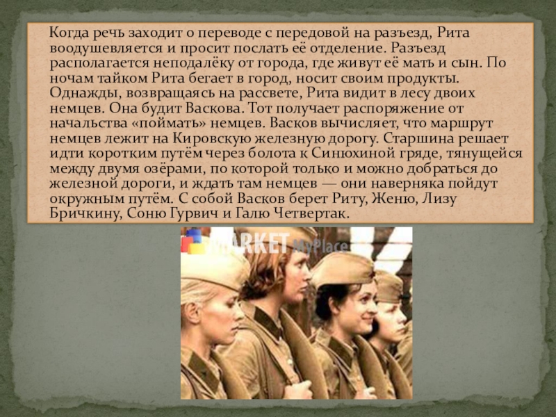 Слайд 3 На разъезде спокойно. Солдаты прибывают сюда, осматриваются, а потом