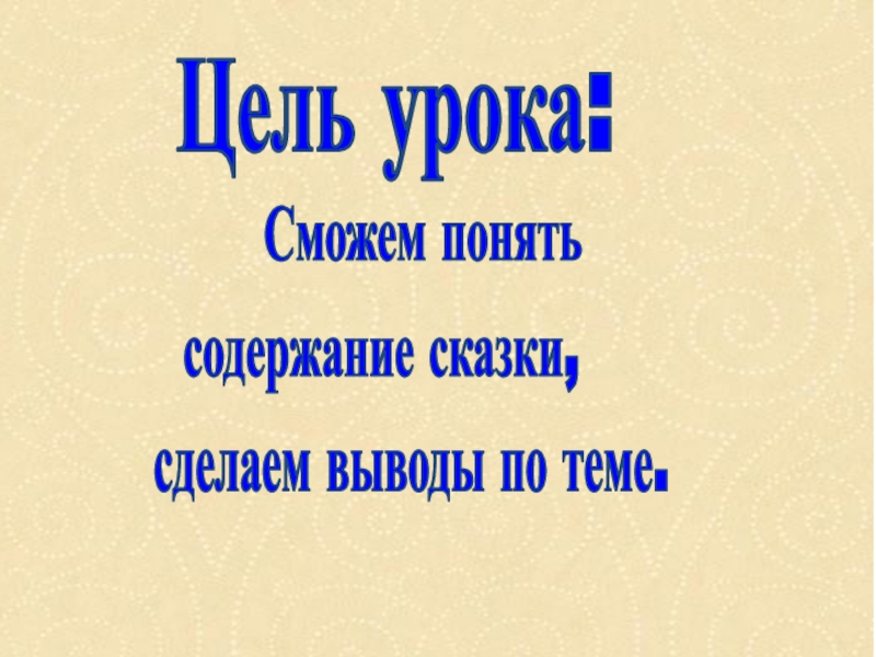 Цель урока:сделаем выводы по теме.Сможем понятьсодержание сказки,