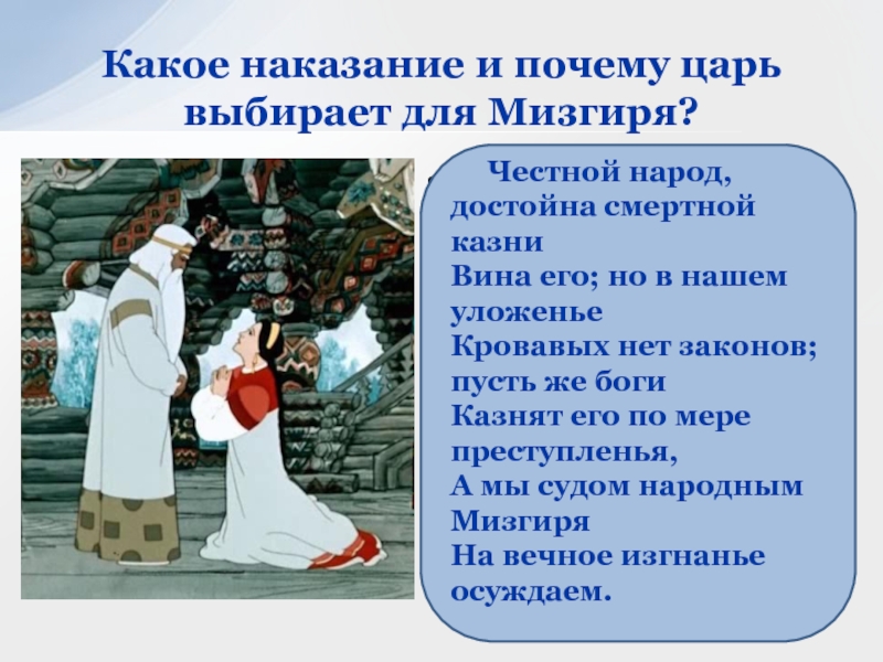 Какое наказание и почему царь выбирает для Мизгиря?