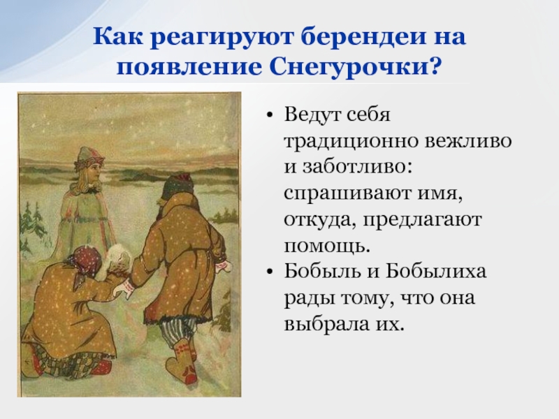 Как реагируют берендеи на появление Снегурочки?