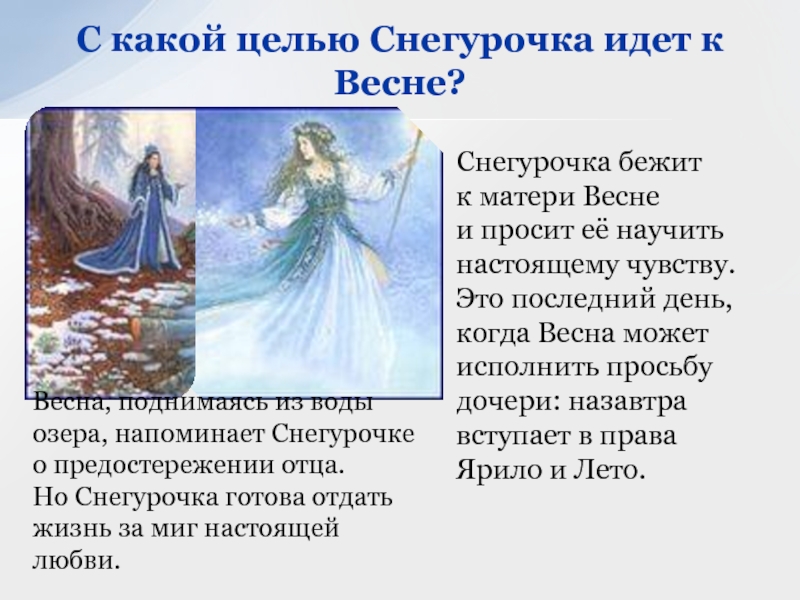 С какой целью Снегурочка идет к Весне?