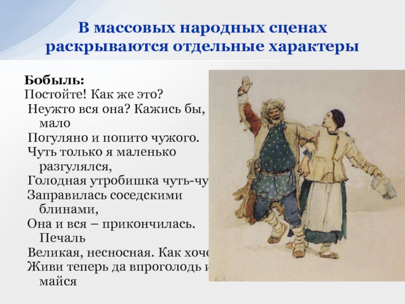 В массовых народных сценах раскрываются отдельные характеры