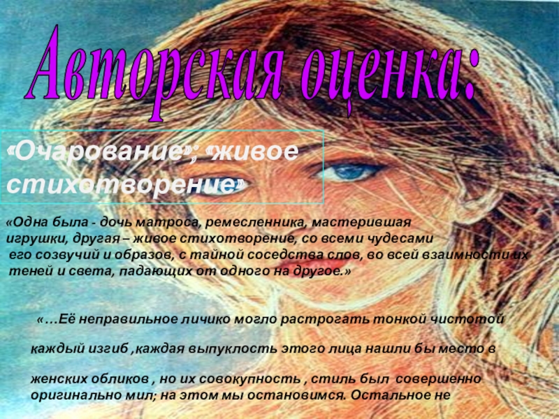 «Прекрасные, несколько серьезные для ее возраста глаза посматривали с робкой сосредоточенностью глубоких душ».