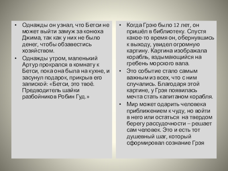 Мир может одарить человека приближением к чуду, но войти в него или остаться на твердом берегу рассудочности – решает сам человек. Это и есть тот душевный шаг, который сформировал сознание Грэя