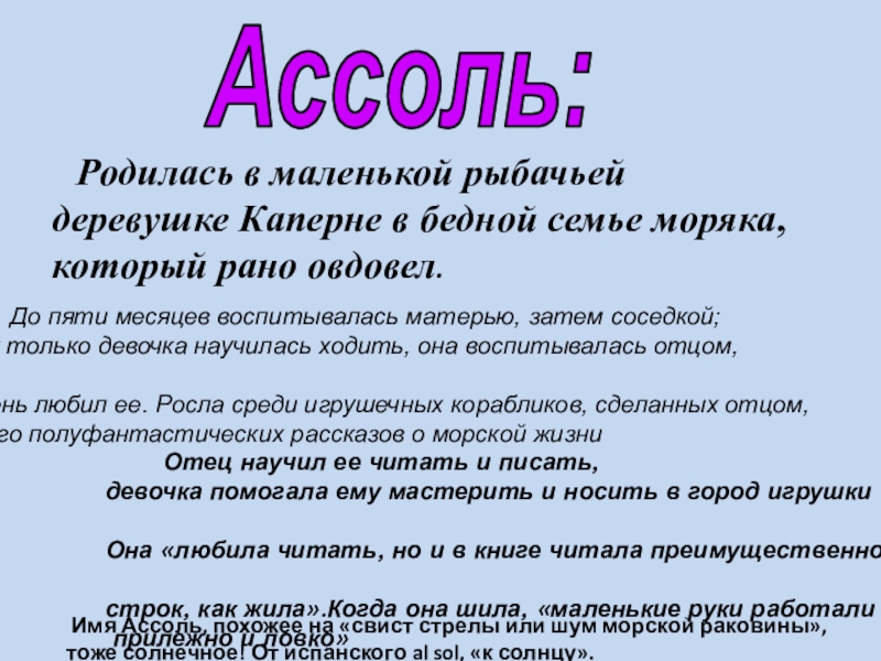 Имя Ассоль, похожее на «свист стрелы или шум морской раковины»,