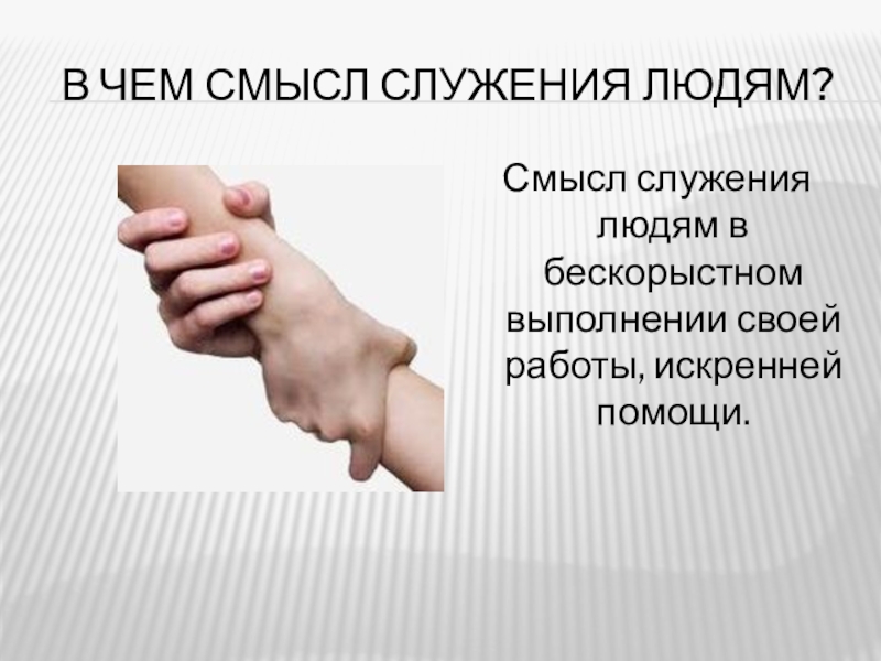 Слайд 13В чем смысл служения людям?