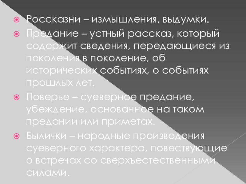 Предание – устный рассказ, который содержит сведения, передающиеся