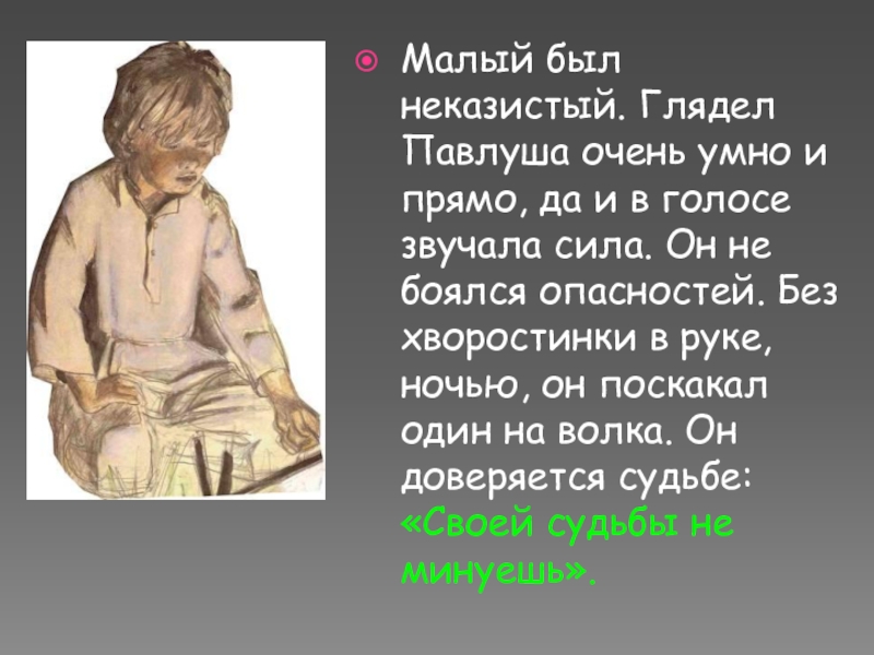 Малый был неказистый. Глядел Павлуша очень умно и прямо, да и