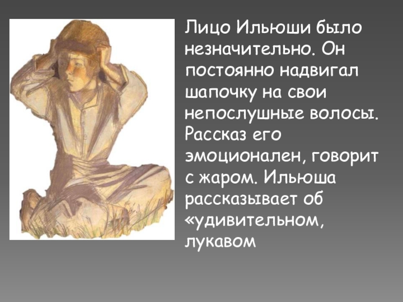 волосы. Рассказ его эмоционален, говорит с жаром. Ильюша рассказывает об «удивительном, лукавом