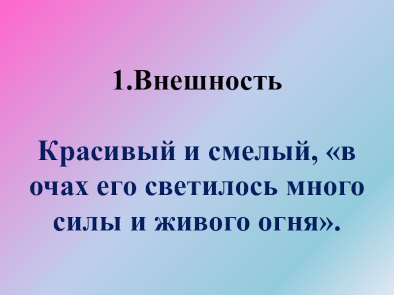 Слайд 321.Внешность Красивый и смелый, «в очах его светилось много силы и живого