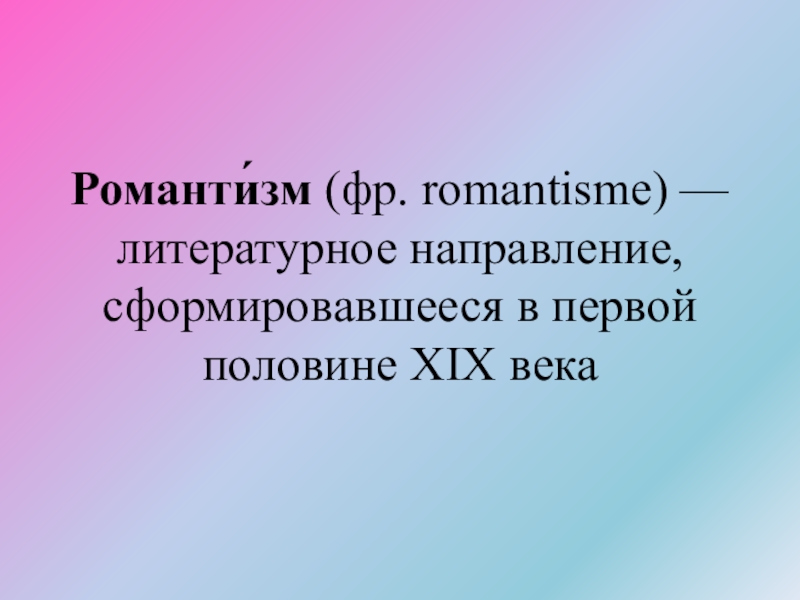 Слайд 5Романти́зм (фр. romantisme) — литературное направление, сформировавшееся в первой половине XIX