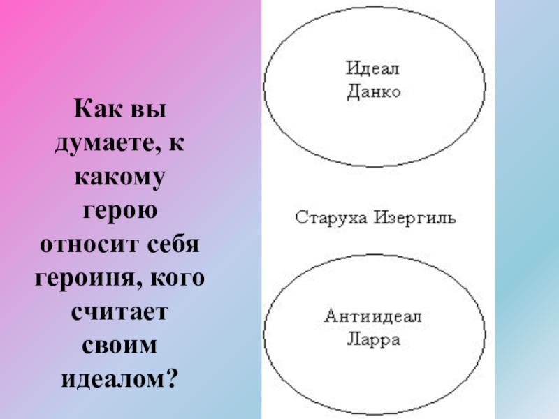 Слайд 52Как вы думаете, к какому герою относит себя героиня, кого считает
