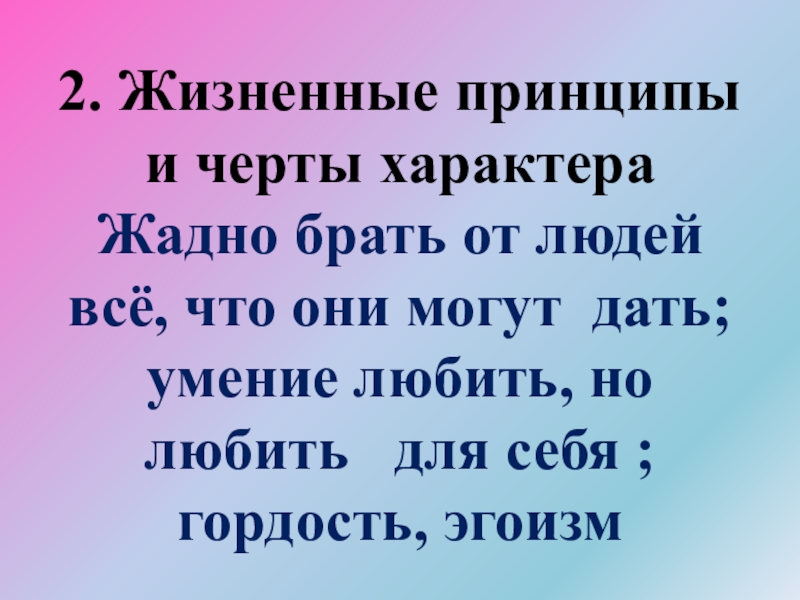 Слайд 452. Жизненные принципы и черты характера Жадно брать от людей всё, что