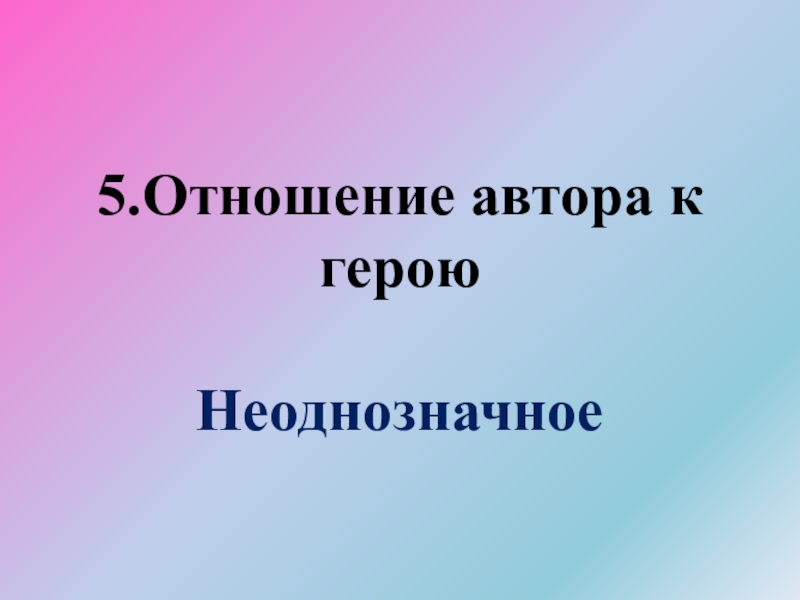 Слайд 515.Отношение автора к герою Неоднозначное