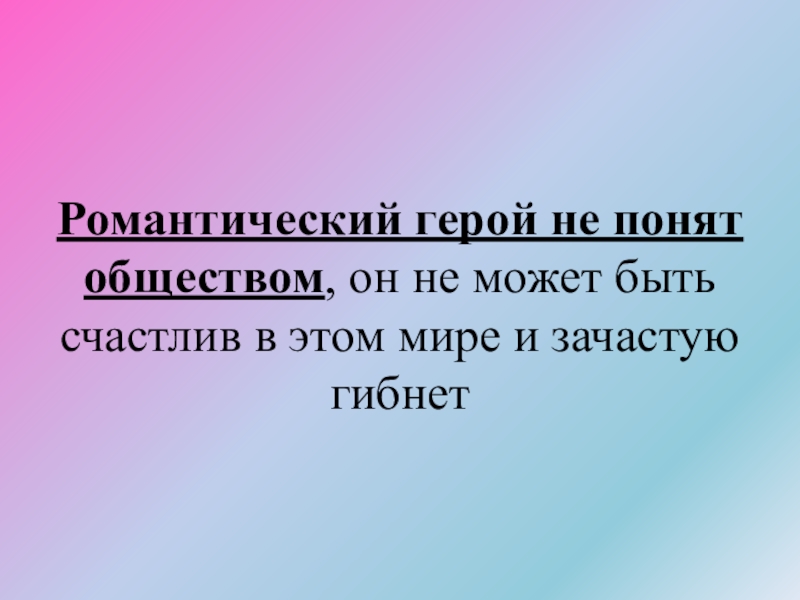 Романтический герой не понят обществом, он не может быть счастлив в этом мире и зачастую гибнет