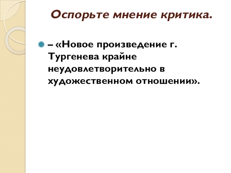 – «Новое произведение г. Тургенева крайне неудовлетворительно в художественном