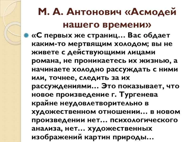 Слайд 19М. А. Антонович «Асмодей нашего времени»