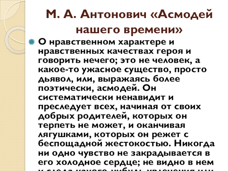 Слайд 22М. А. Антонович «Асмодей нашего времени»