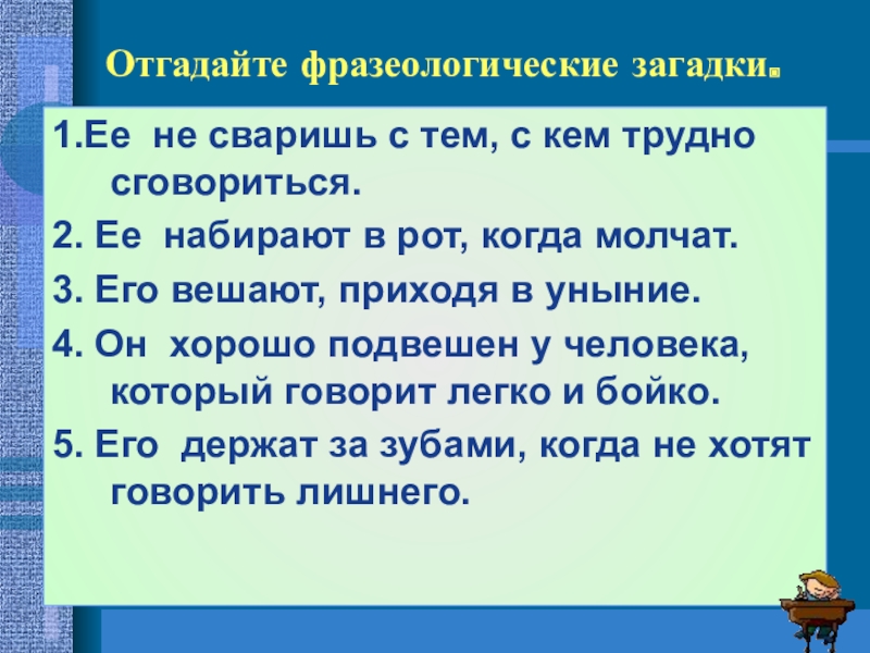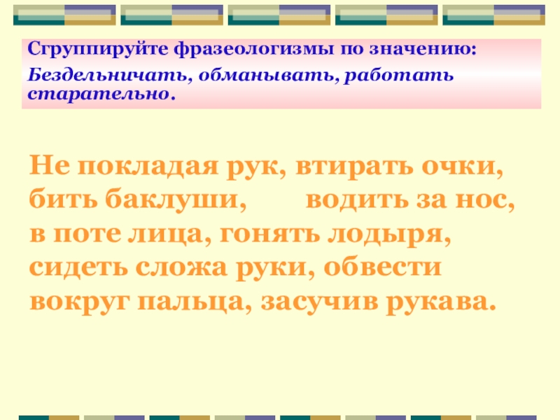 Сгруппируйте фразеологизмы по значению: