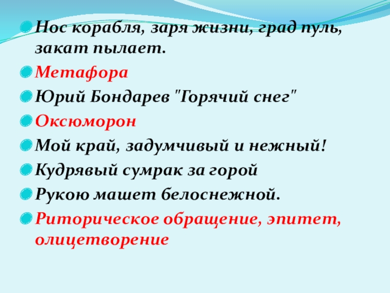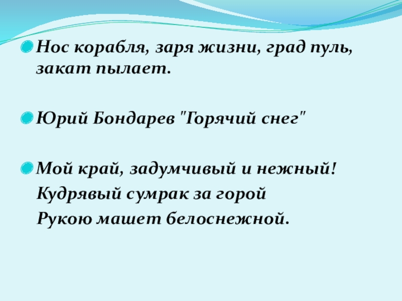 Слайд 7Нос корабля, заря жизни, град пуль, закат пылает.