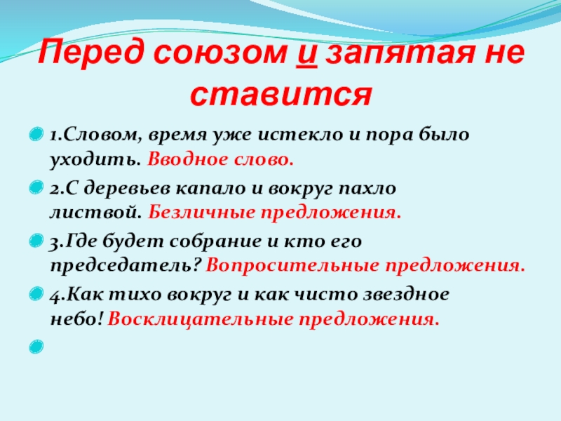 Перечислите случаи, когда между частями ССП запятая не ставится?