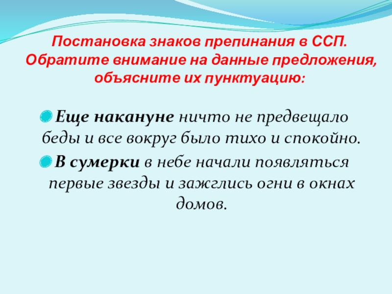 Постановка знаков препинания в ССП. Обратите внимание на данные предложения, объясните