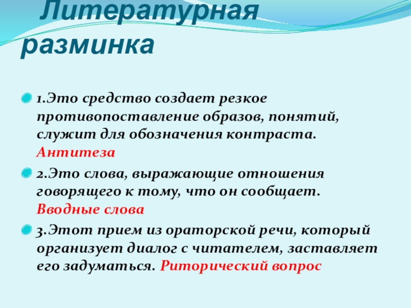 1.Это средство создает резкое противопоставление образов, понятий, служит