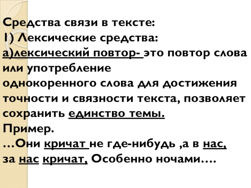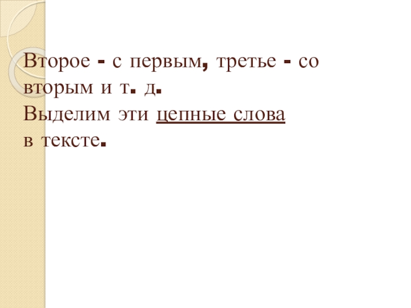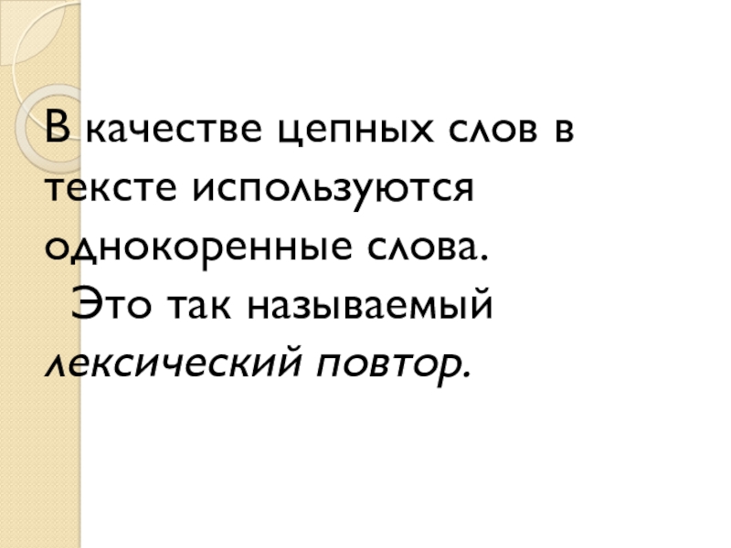 Слайд 12В качестве цепных слов в тексте используются однокоренные слова.