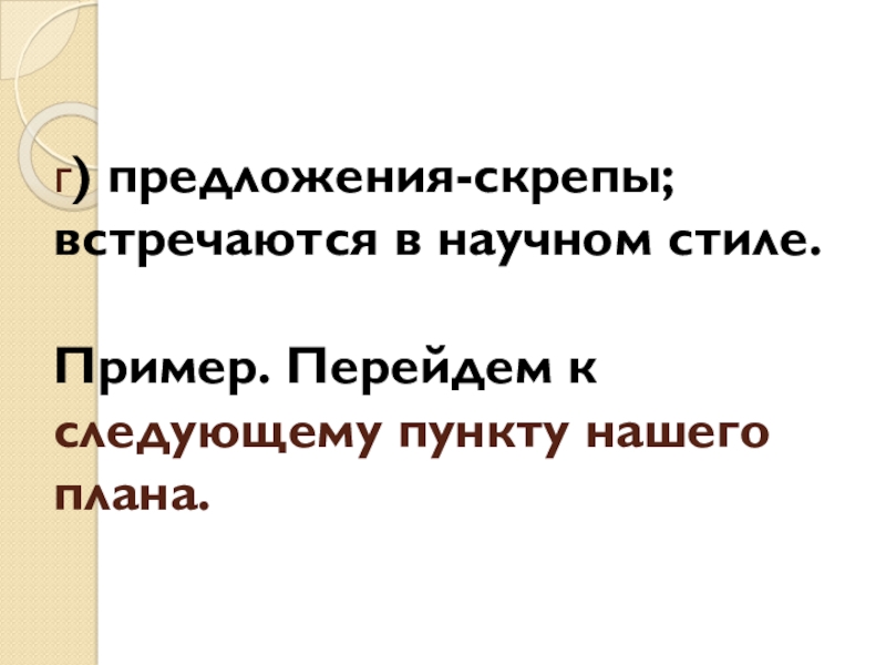 Слайд 31г) предложения-скрепы; встречаются в научном стиле.