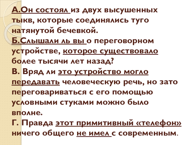 Г. Правда этот примитивный «телефон» ничего общего не имел с современным.