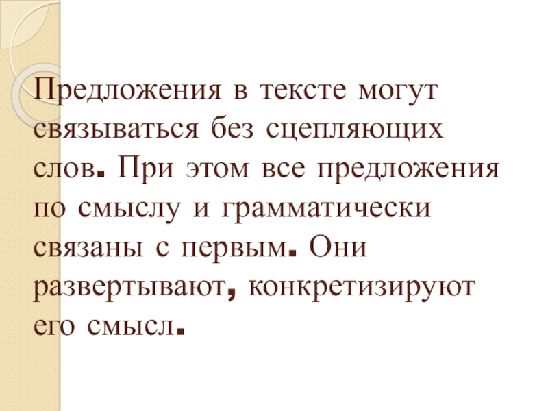 Слайд 17Предложения в тексте могут связываться без сцепляющих слов. При этом все