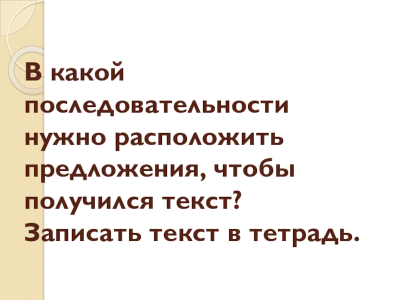 Слайд 22В какой последовательности нужно расположить предложения, чтобы получился текст?